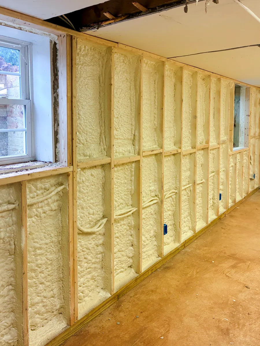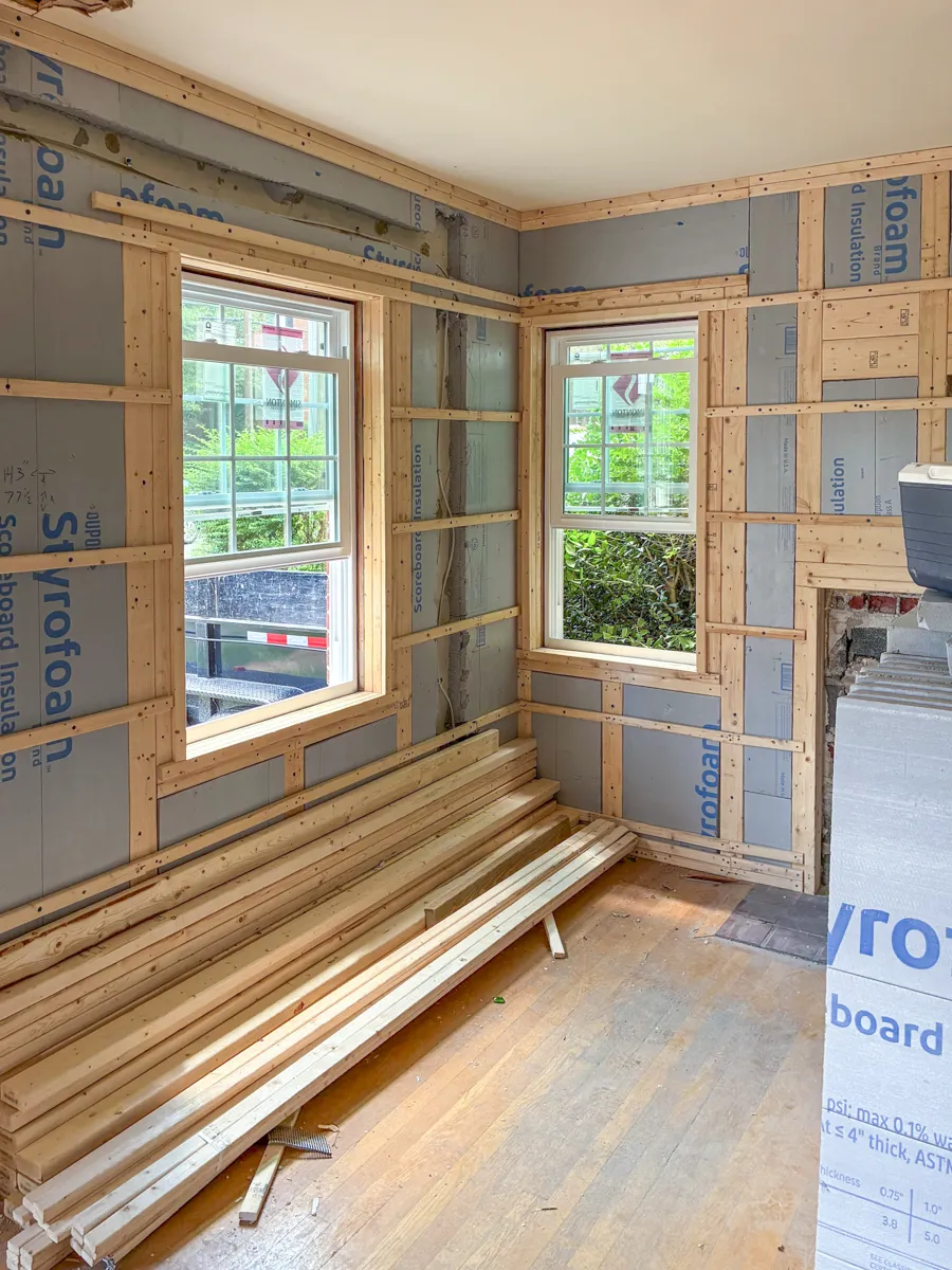 - In order to bring this to 2021 code, Commonwealth Contractors applied poly iso foam boards with furring strips, and masonry screws. We used rockwool insulation between all floors to improve sound dampening.
