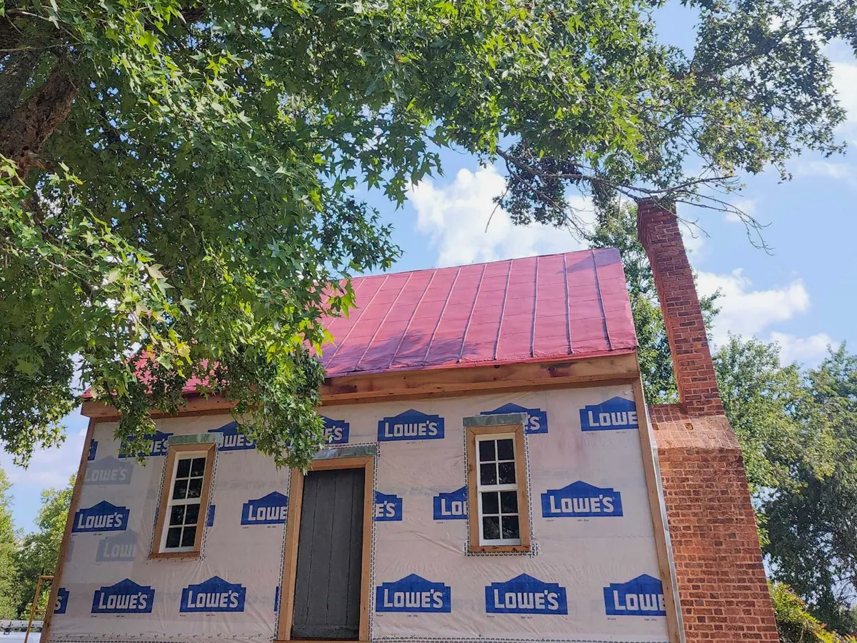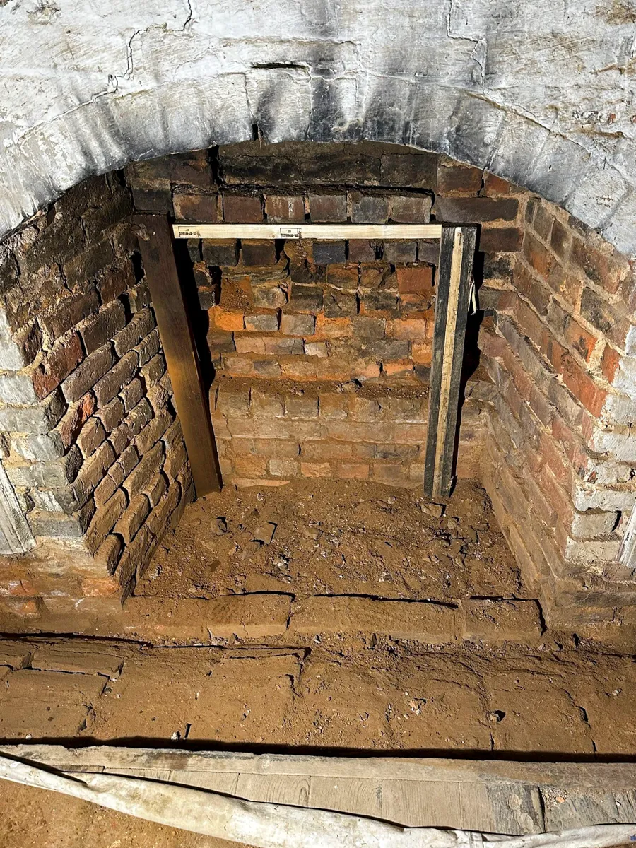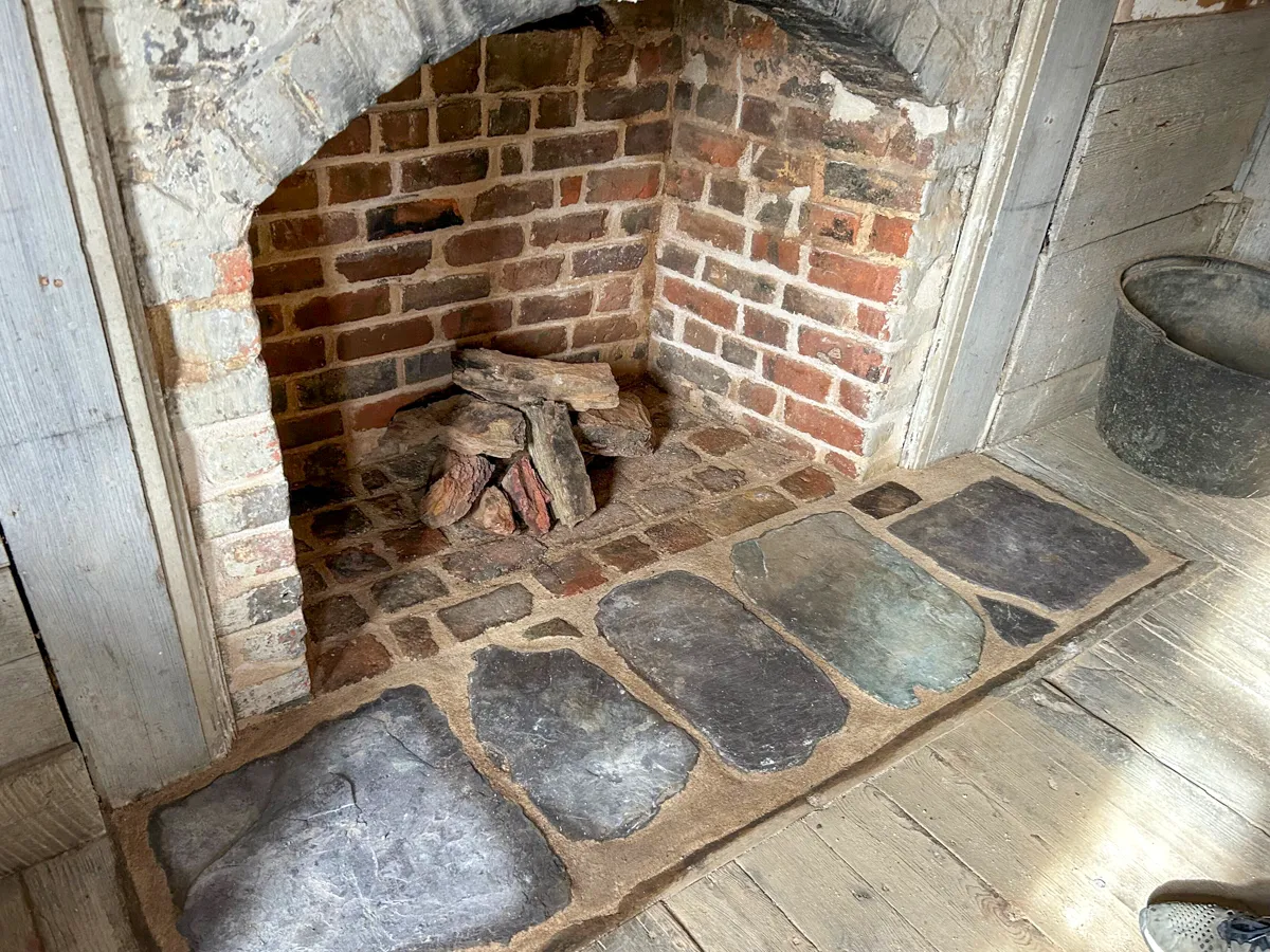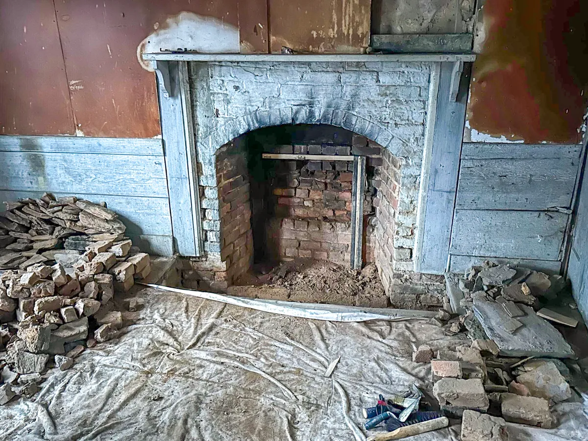 - The fireplace, hearth, and chimney had collapsed, we reopened this and rebuilt it with period correct brick.