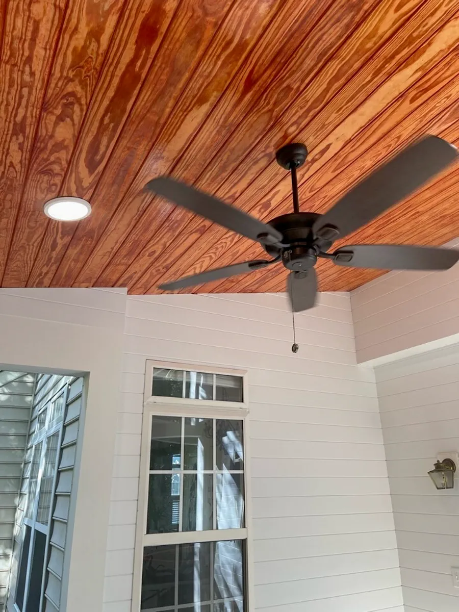We built a stunning A‑Frame porch overlooking the lake, designed for relaxation and year-round use. The ceiling features tongue-and-groove boards, adding warmth and texture to the space.