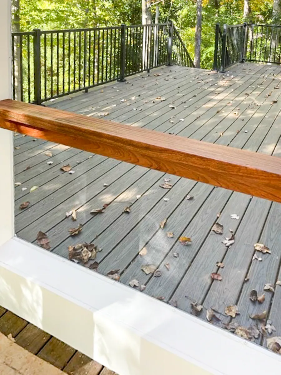 We recently completed a full exterior renovation for a beautiful lake house, transforming it into a showpiece of craftsmanship and lakefront living. Our scope included building a custom portico, sealing brick walls, adding an A‑Frame porch, and constructing a multi‑level deck system that connects directly to the water.