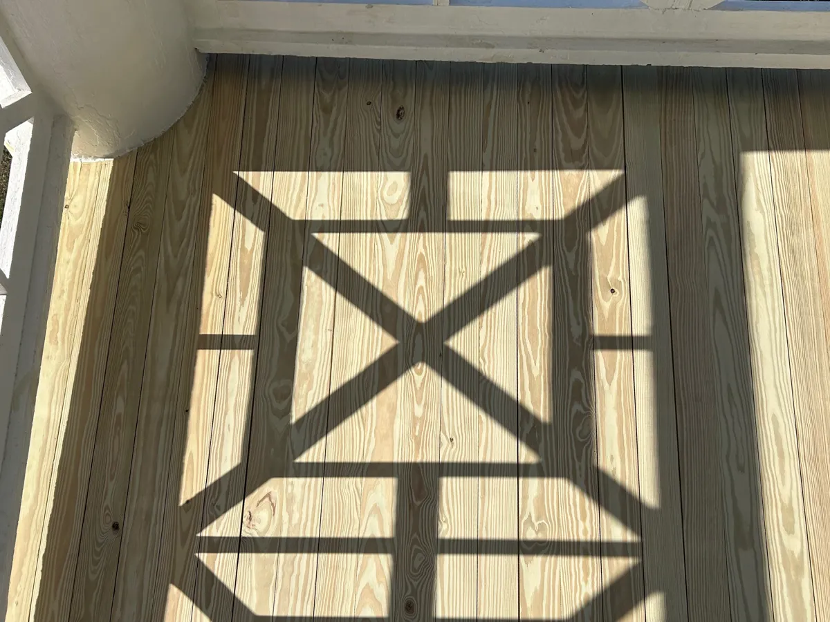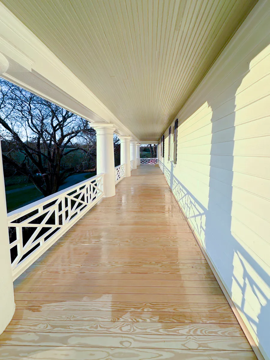 - We relaid the front porches’ hardwood flooring, waterproofed, and redid the railing.